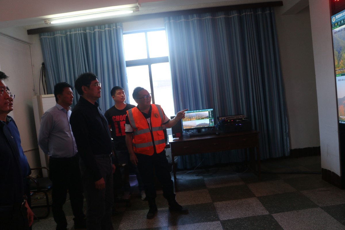劉宏葆一行查看了普威國有林保護局森林防火預警平臺建設、指揮中心大屏系統(tǒng),詳細詢問了野外林火監(jiān)控系統(tǒng)的運行和管理情況,并聽取了匯報。